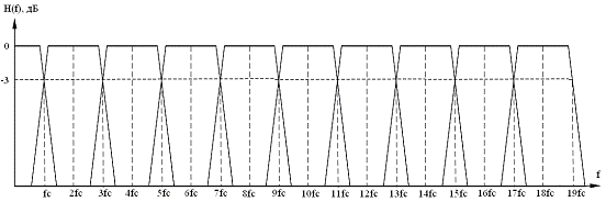 полосовых фильтров для восстановления огибающей спектра речевого сигнала.