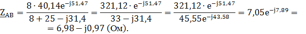 = 25 - j31,4 = 40,14e-j51,47 (Ом).