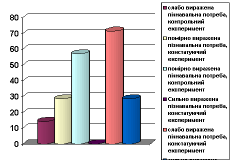 вибірці першокласників за допомогою методики «Пізнавальна потреба» В. Юркевича