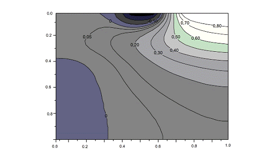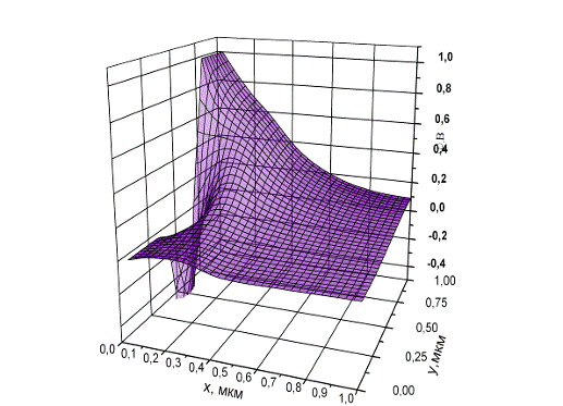 Рис. 2.4 Распределение величины потенциала по расчетной области