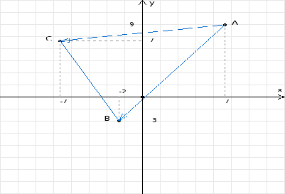 А(7, 9); В(-2, -3); С(-7, 7)
