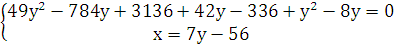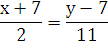 х + 7 = - 7у + 63