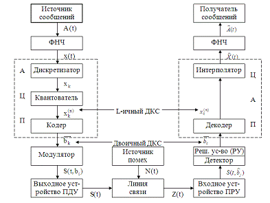 аналого-цифрового преобразователя (АЦП) сообщение преобразуется в первичный