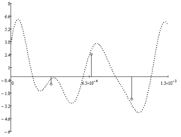 дискретизатора и квантователя (круглые маркеры соответствуют сигналу с выхода