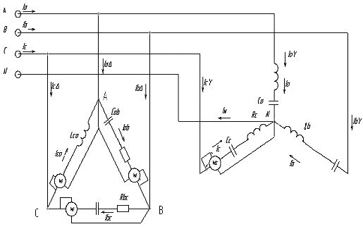 комплексных действующих значений токов во всех фазах обоих приемников и токов на