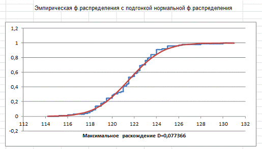 график эмпирической функции распределения выборочных данных, совмещенный с