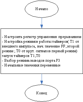 регистр управление пре.в= 0x61; // Т1 от внеш. импульса, второй режим, Т0 от