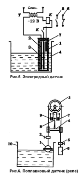 на включение насоса. Электроды датчика включены в цепь катушки промежуточного