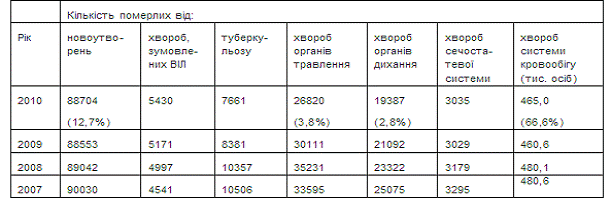 статистики та МОЗ України [5, 6], серед причин смерті населення у 2006 - 2010