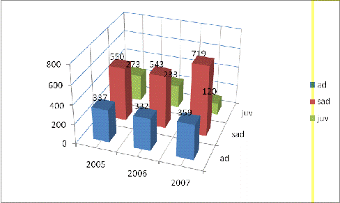 чисельності популяції гусей за 2005-2007 роки в ТОВ МГ «Черкаське».