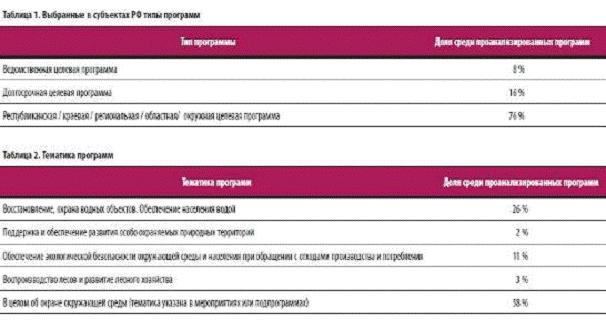 программ в области охраны окружающей среды субъектов РФ на основании научных