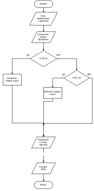 уровня сыпучего сырья в бункере. Для прочих датчиков системы алгоритм управления