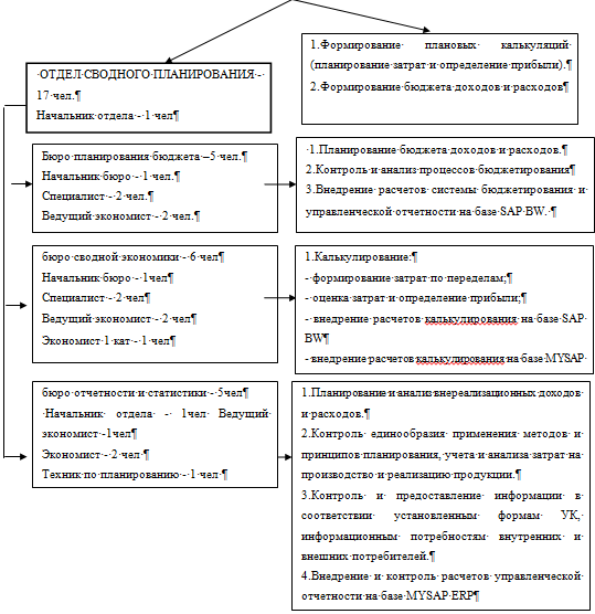 Рисунок 2 Структура и ключевые бизнес - процессы Отдела сводного
