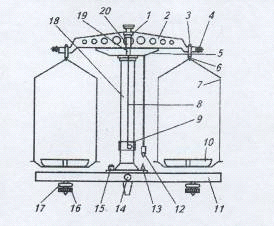 3-электронагреватель, 4-трубка переливная, 5-уравнитель, 6-труба слива,