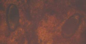 красновато-коричневый экссудат, содержащий большое количество крупинок.