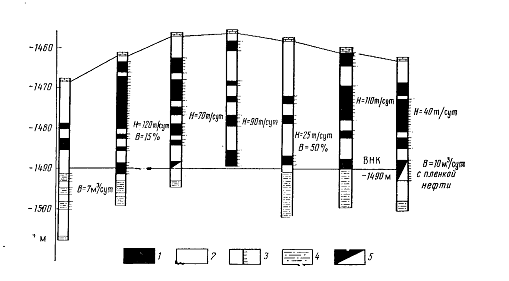 коллекторов, исходя из принятых при подсчете запасов положений ВНК по ближайшим