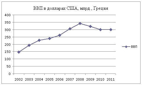 Таблица 1 - ВВП в долларах США, млрд., Греция, 2002 - 2011 гг.