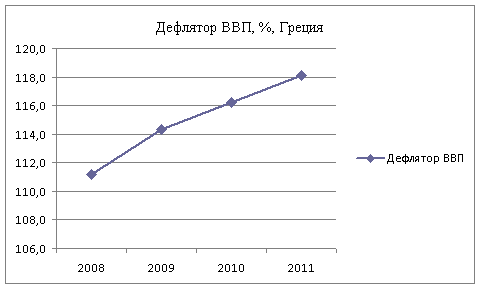 Таблица 20 - Реальный темп роста ВВП, %, Греция, 2009-2011 гг.