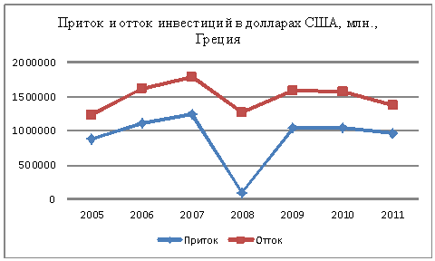 Таблица 26 -Приток прямых иностранных инвестиций, $млн., Греция,