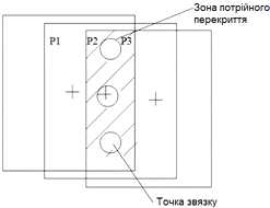зоні потрійного перекриття, вимірювання яких виконується в процесі побудови