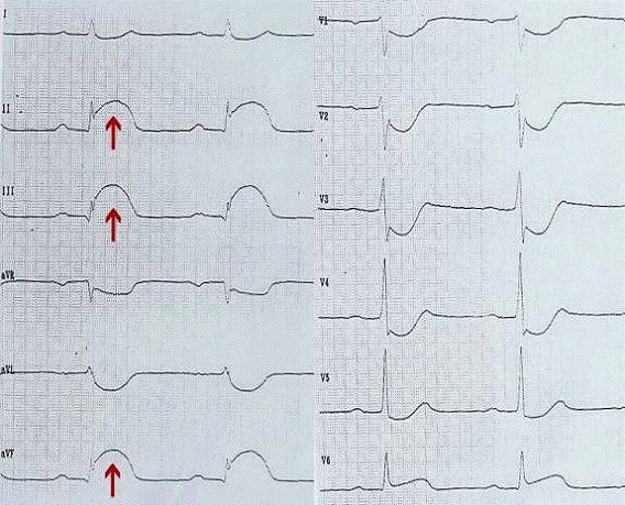 депресія сегмента ST та інверсія хвилі Т на ЕКГ у поєднанні з помірною