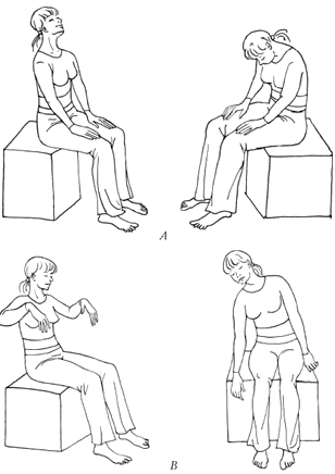 При выполнении массажа больной принимает положение сидя и расслабляет