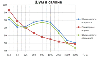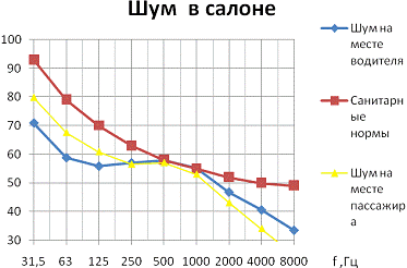 Таким образом из графика Рис.6 видно, что шум в салоне