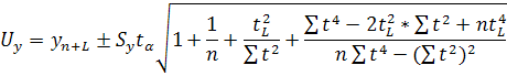 данные точечных прогнозов, полученных с помощью прогрессии, найдем