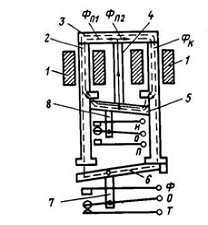 части 4, называемой якорем. Якорь воздействует на контакты 5. При прохождении