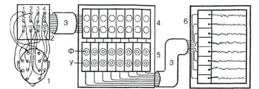регистрации подаются напряжения, отведенные двумя электродами: одно - на