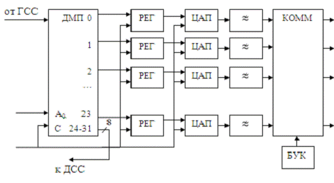 каналов: ДМП - демультиплексор; РЕГ - последовательно-параллельный регистр; ЦАП