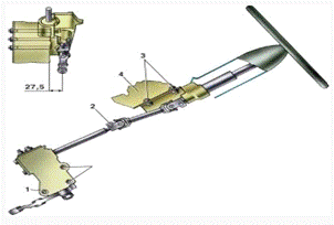 конец рулевой колонки прикреплен к кронштейну педалей сцепления и тормоза с