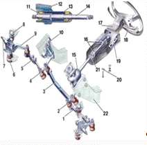 осуществляется рулевым механизмом и системой рулевых тяг и рычагов. Картер