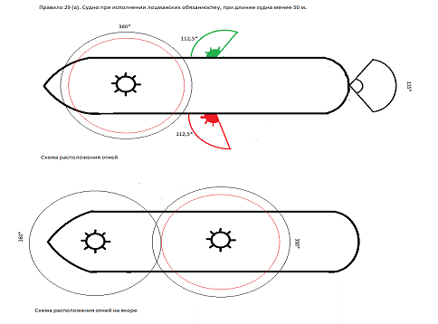 выставлять лоцманские суда согласно правила № 29 МППСС-72? Изобразить на