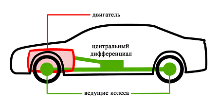 автомобиля, когда крутящий момент, создаваемый двигателем, передаётся на все