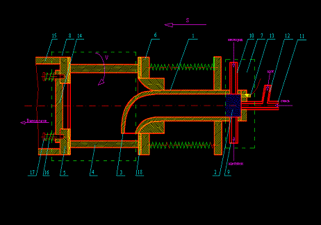 ствол пушки совершает возвратно-поступательные перемещения с подачей S