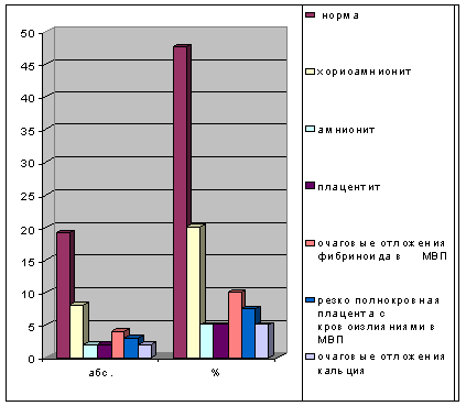 изменения в виде хориоамнионита - 20%, амнионита - 5% и плацентита - 5%.