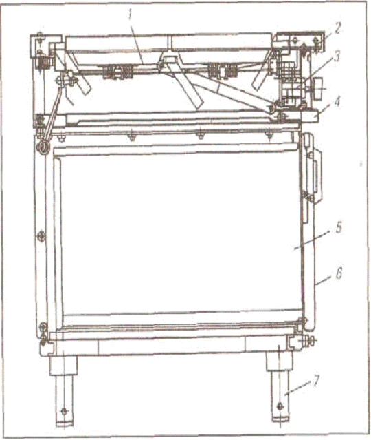 поддон; 5 - шкаф-подставка; 6 - дверца шкафа; 7 - регулируемая по высоте ножка