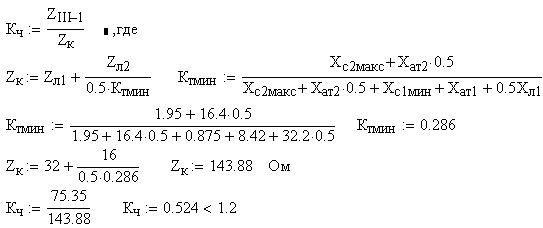 рассчитанная уставка не удовлетворяет требованиям чувствительности. Для
