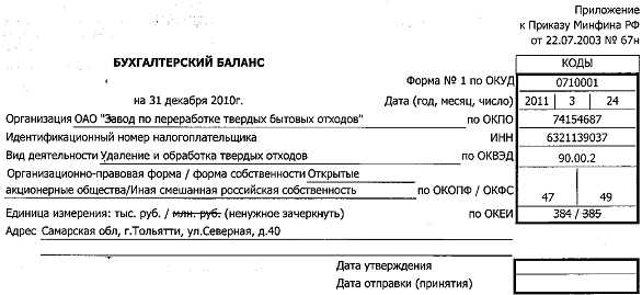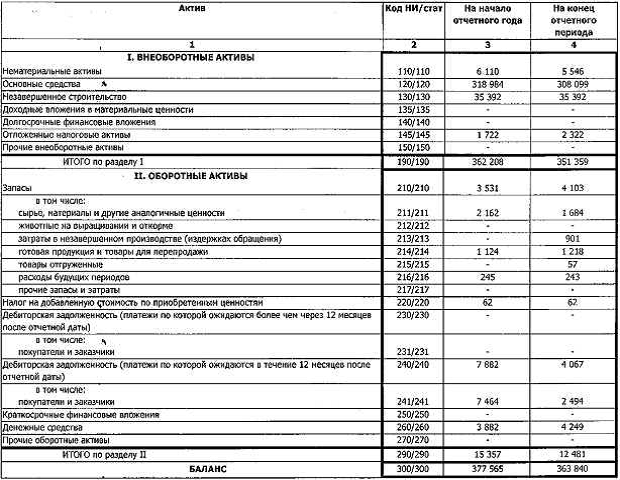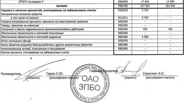 Бухгалтерский баланс ОАО «ЗПБО»