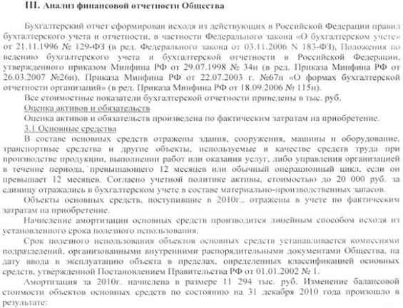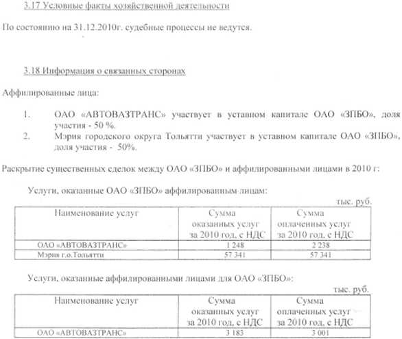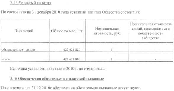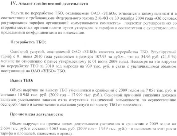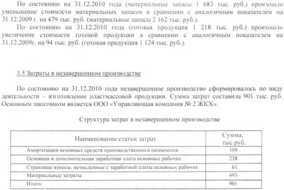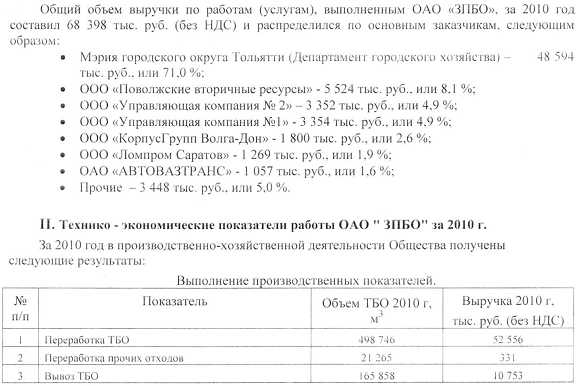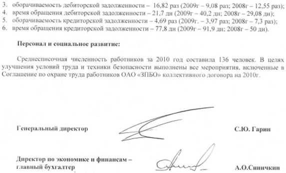 Пояснительная записка за 2010 год ОАО «ЗПБО»