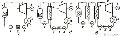 схема АЭС: а - одноконтурная; б - двухконтурная; в - трехконтурная; 1 -