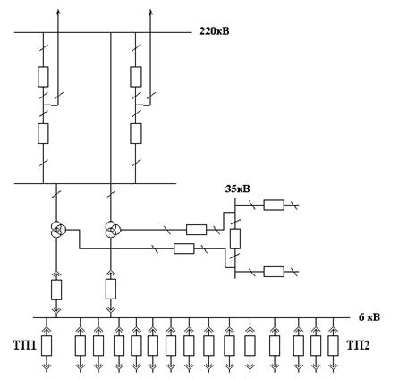 напряжения: 220 кВ, 35 кВ и 6 кВ. Имеет 13 отходящих линий на стороне 6 кВ и 2