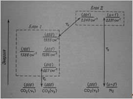 нижних энергетических уровней молекул СО2 и N2 (упрощенная)