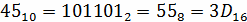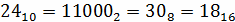 двоичный, восьмеричный и шестнадцатеричный кода. Над двоичными эквивалентами
