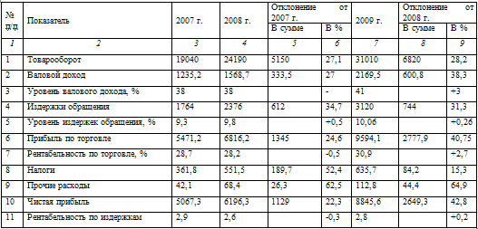 Показатели эффективности коммерческой деятельности ИП Иванова за 2007-2009гг. (тыс. руб.)