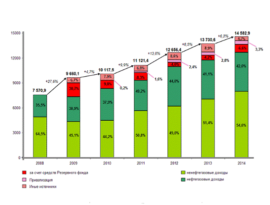 1,5 триллиона рублей (1,6% ВВП), в 2014 году - 491 миллиарда рублей (0,7% ВВП).