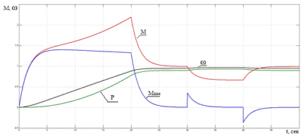 пуска с последующими режимами сброса и наброса нагрузки, имеет схему