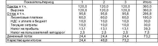 денежному потоку, равному цене приобретения актива (с транспортировкой, установкой