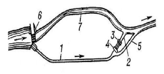 типа: 1 - деривационный подводящий канал; 2 - деривационный отводящий канал; 3